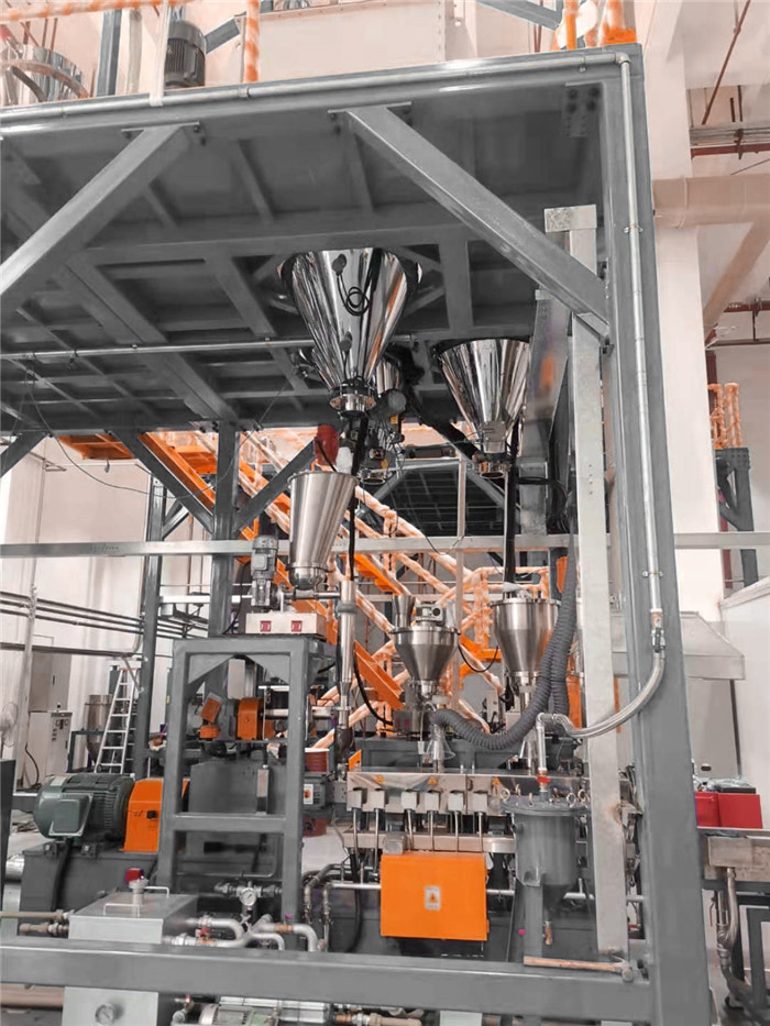 失重式喂料機(jī)由料斗、喂料器(單、雙軸螺旋喂料器)、稱重系統(tǒng)和調(diào)節(jié)器組成,在操作中,料斗、物料和喂料器共同連續(xù)地進(jìn)行稱重。隨著物料送出后,測量真實(shí)的失重速率,并將它與所需要的失重速率(設(shè)定值)加以比較。通過調(diào)解喂料器速率來自動(dòng)修正偏離設(shè)定點(diǎn)的偏值。從而可以均勻準(zhǔn)確地連續(xù)喂送物料。