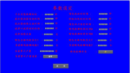 6、當(dāng)前斷線檢測碼數(shù)1和碼數(shù)2是顯示當(dāng)前實(shí)際檢測到的不斷線狀態(tài)下縫完一包編碼器記錄的碼數(shù),此參數(shù)不可設(shè)置,僅為縫包合格碼數(shù)設(shè)定提供參考依據(jù)。