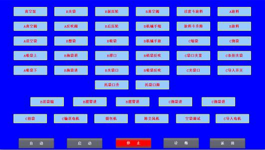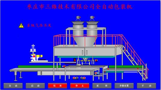 運(yùn)行畫面顯示設(shè)備示意圖、操作按鈕、運(yùn)行指示燈及相關(guān)報警信息等。