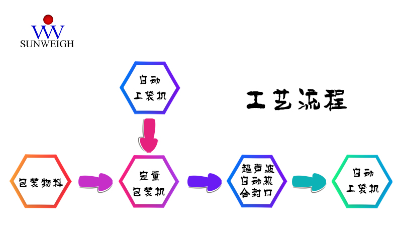 生產(chǎn)出的物料首先進入緩存料倉中,待包裝機開始包裝時,當(dāng)重量達(dá)到事先設(shè)定好的值時,包裝機停止給料。自動上袋機自動拾取包裝袋,通過上袋機將包裝袋套在包裝機下料口處,包裝機檢測到包裝袋,螺旋開始工作將物料送入包裝袋內(nèi),等到填袋完畢后,夾袋裝置松袋推袋裝置將裝滿物料的袋子推到輸送機上超聲波封口,最后再由輸送機將包裝好的物料包裝袋輸送到下個工序。